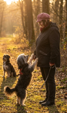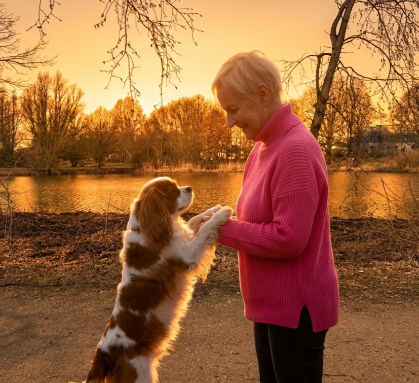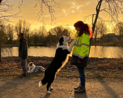Trainerin Liane kommuniziert mit ihrem Hund Harley.
